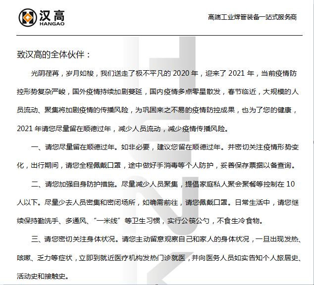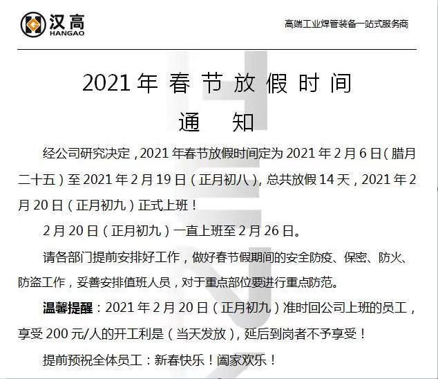 新的一年里,漢高機(jī)械祝大家財(cái)源廣進(jìn),闔家安康?。。?/span>