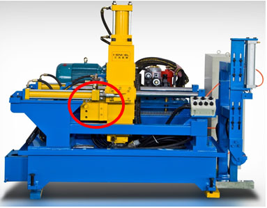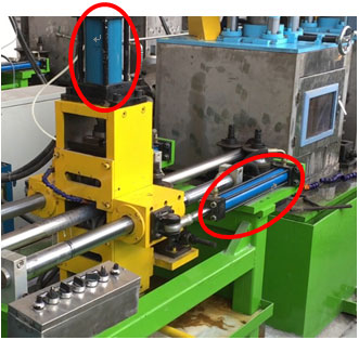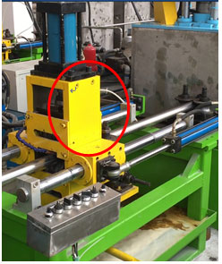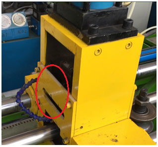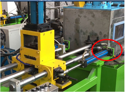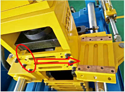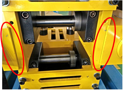 五、漢高正品的立輥合模機(jī)構(gòu)上,采用光軸加鋼套與水平模框嵌入固定;仿制品則隨便用了一組制管機(jī)上的立輥機(jī)構(gòu)。如下圖所示: