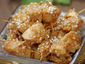 原料:雞胸肉1塊、白芝麻適量、玉米淀粉1小勺、孜然烤肉料50g