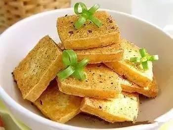 原料:北豆腐1盒、香蔥、椒鹽3克、白胡椒粉3克、料酒少許