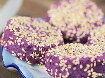 1. 紫薯洗凈削皮,切塊,放在蒸架上蒸20分鐘,放涼后碾成泥狀。
